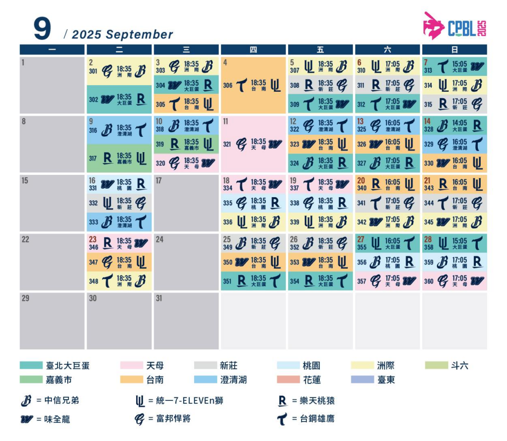 2025年9月中職棒賽程