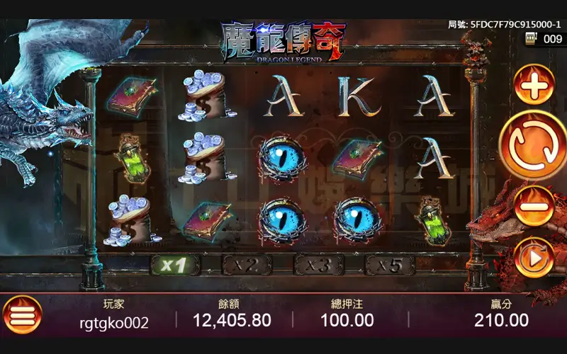 魔龍傳奇 擁有 七種不同的圖示,包括 魔法書、魔藥、銀幣,以及 A、K、Q、J 等經典符號。當玩家成功觸發連線時,遊戲內的 冰龍或火龍 便會施展強大的 吐息效果,代表玩家獲得相應的獎勵。